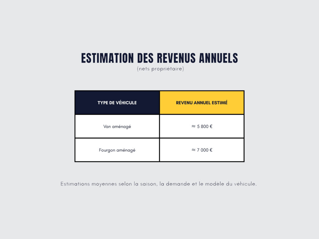 Les revenus varient selon la saison, le modèle du véhicule et son niveau d’équipement.